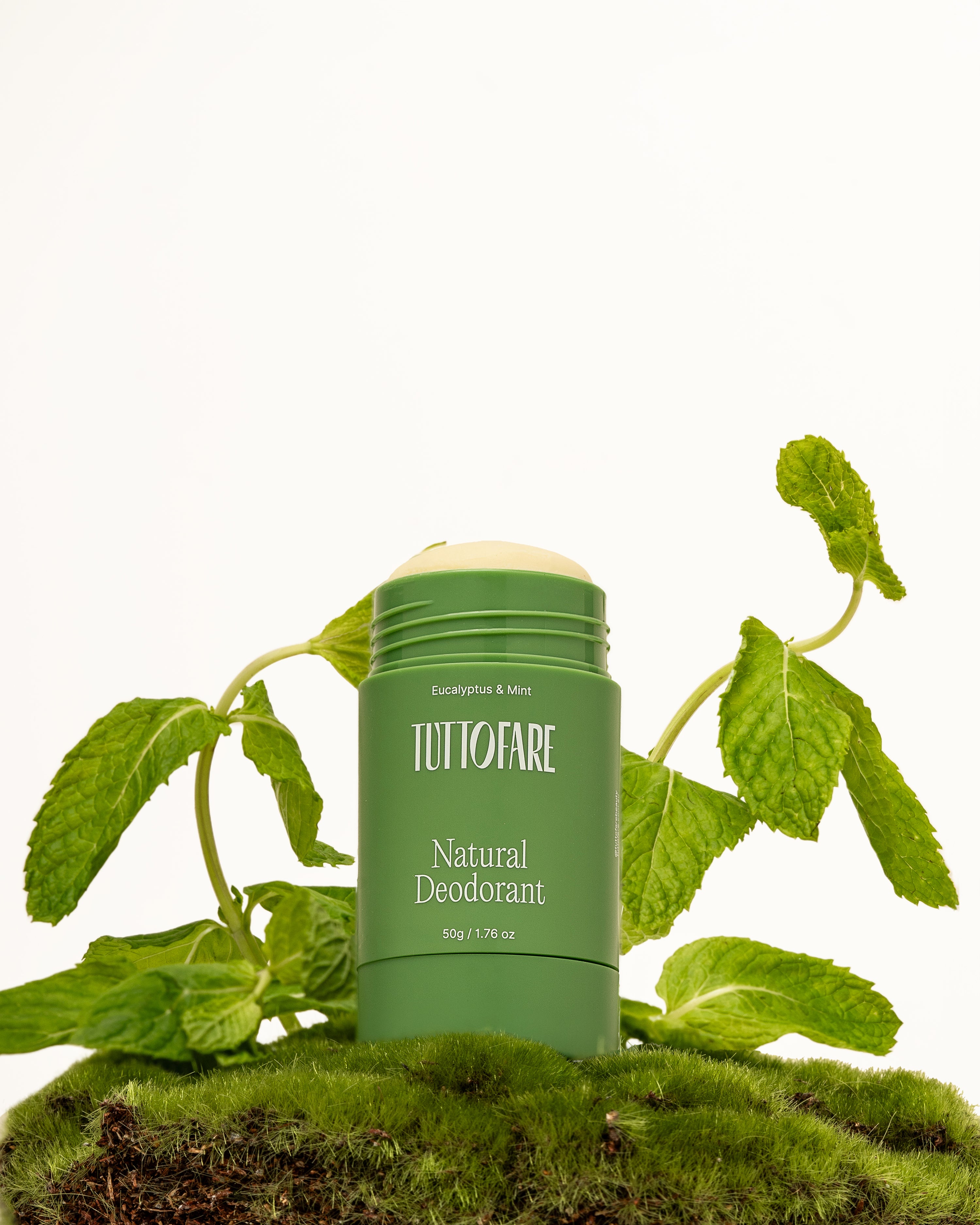 Scented naturally with Australian eucalyptus and fresh mint for all-day freshness. Comes in an ultra-convenient non-stick, solid stick. TUTTOFARE Natural Deodorant glides under your underarms, so then you can glide through your day.